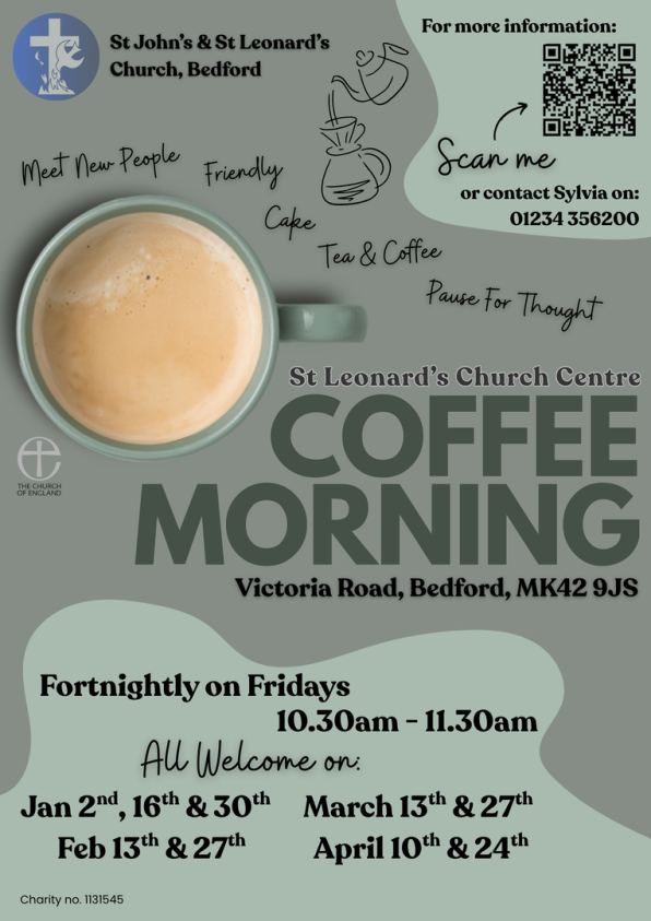 10.30am to 11.30am - Coffee Morning at St Leonard's Centre (see poster below).