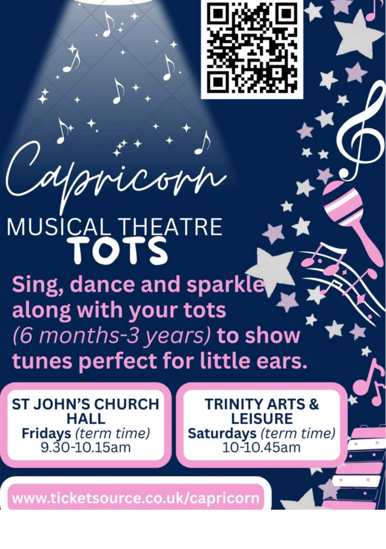 9.30am to 10.15am - Musical Theatre for Tots (Capricorn Performing Arts Group) in St Johns hall (term time).