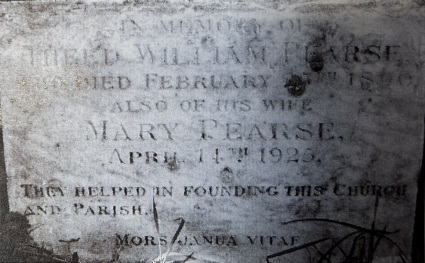That land was a gift but later other plots of land were given or sold by Mr. and Mrs. Pearse for St. Leonard's later buildings. The stone in the picture below was laid in the church which had been built in 1911/12 but demolished in 1990. This and other memorials stones from that church are preserved currently at St Leonard's Church Centre in the garden