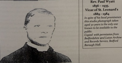 Paul Wyatt was Vicar of St. Leonard's for its first five years, followed by his brother, Rev. Vetruvius Wyatt. Paul became Chaplain at the Royal Chapel of the Savoy, London but remained closely involved in the work of St. Leonard's and Bedford, taking up civic duties in the town and county.
