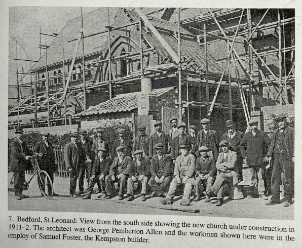 "Long before the actual starting the temporary church of St. Leonard, I had a conversation with my old dear friend, who was also my old master, the vicar of St. Mary's and offered my services to carve out a new district of St. Leonard's. After short and practical suggestions, the vicar said "We will try to do it and go to see our old friend Mr. Theed Pearse. The kindliest sympathy was forthcoming from Mr. Pearse who aided our efforts with the grant of the first site. With that bit of land and nothing else but blessings I started. It was no joke being separated from the rest of Bedford by the terrible boundary of a railway and a bridge. I was absolutely alone."