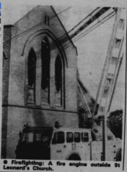 1988 and took an hour to bring under control, leaving the chancel completely gutted. It is thought an electrical fault caused the fire. The congregation had grown to around 20-25, mainly people from St John's but also extra locals as well as, a small Indian congregation with a service in Punjabi.