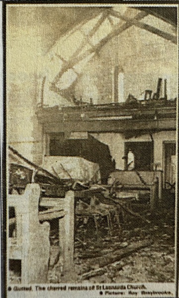 An article from the Bedfordshire Times on August 25th 1988, Titled: Blaze Chuch to be knocked down, details;