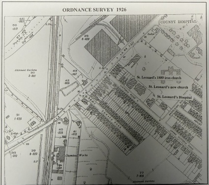 So three years after the temporary church was erected, the St. Leonard's Hospital building was built. The date 1892 can still be seen on the front gable of the building which is now St. Leonard's Church Centre.